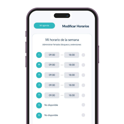 Define horarios, servicios y duración de cada atención para que tus clientes reserven fácilmente.